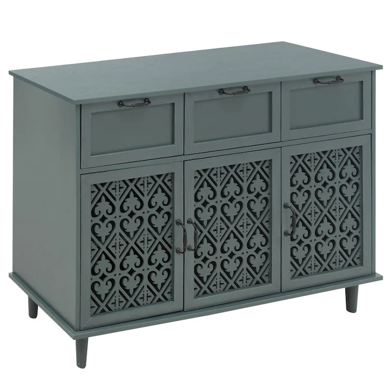 The cabinet door is carved with symmetrical pattern, beautiful shape, good air permeability