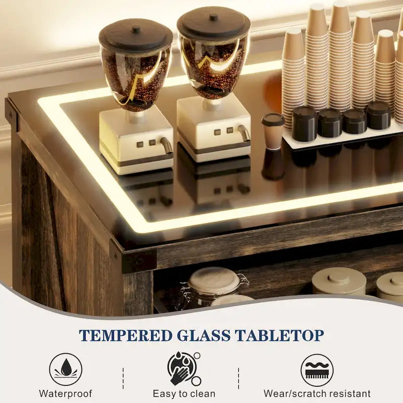 This multifunctional storage cabinet can meet your various storage needs, modern American style with farmhouse style, as a sideboard or buffet cabinet in the dining room or kitchen, with built-in LEDs and charging capabilities, making it a shining focal point wherever you place it.