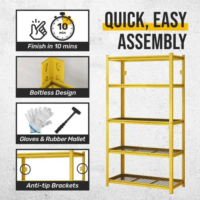 5-Tier Yellow Adjustable Metal Shelving Unit Heavy Duty Garage Storage
