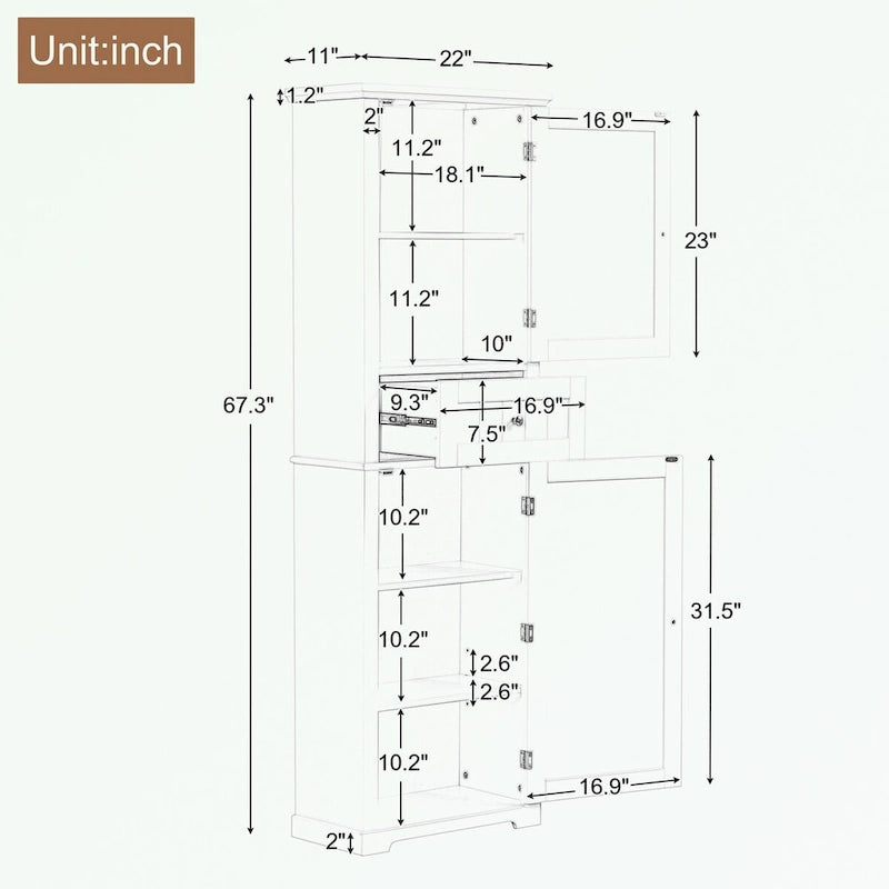 Anti-toppling Device: This cabinet comes with an anti-toppling device that can attach the cabinet into the wall to prevent accidental toppling, and protect customers or children from hurt.
