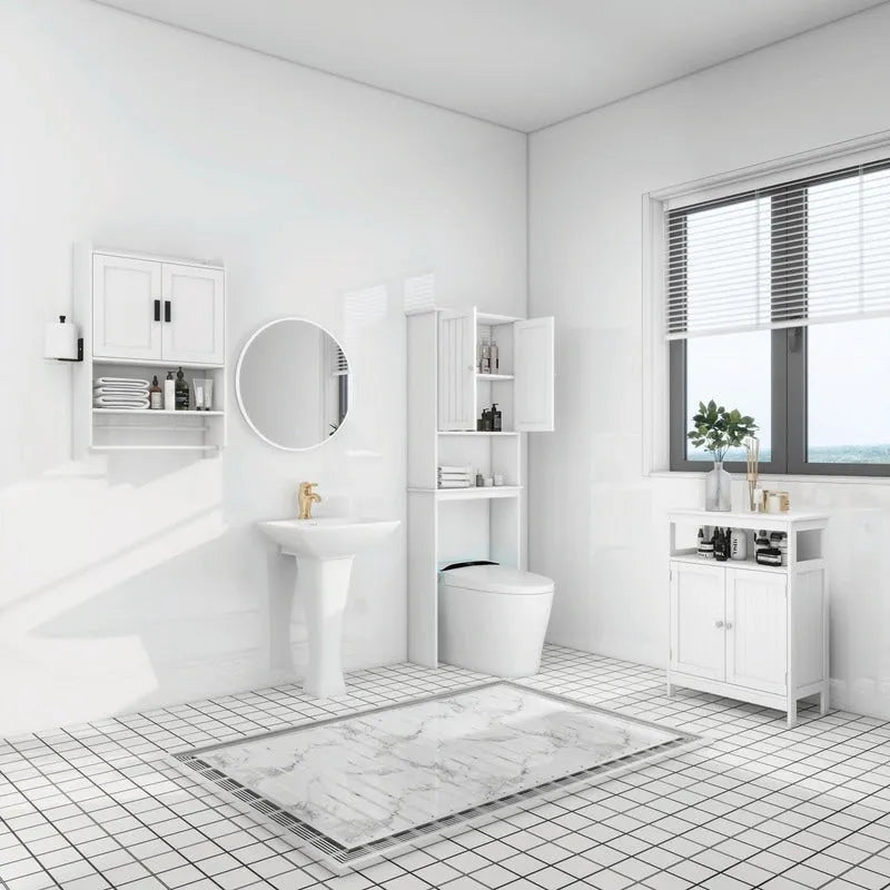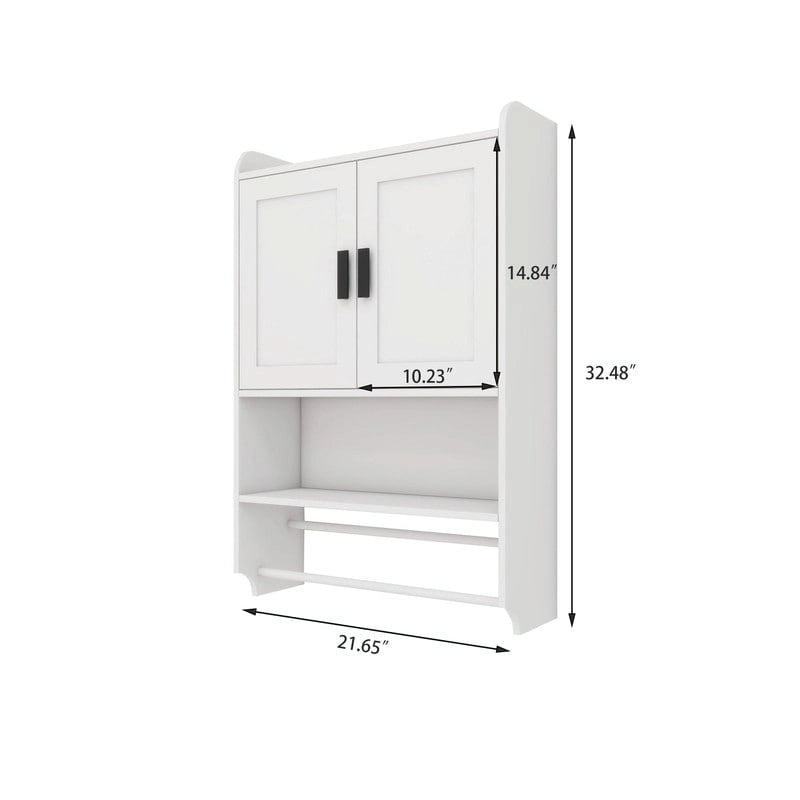 - Space-Saving: Designed to optimize space, this cabinet offers ample storage capacity without occupying extra floor space. The wall-mounted design ensures deep storage, while the open storage shelf facilitates easy access to frequently used items. Hidden storage behind the doors prevents dust accumulation and maintains privacy. Additionally, two towel racks and a paper rack provide added functionality and storage convenience.