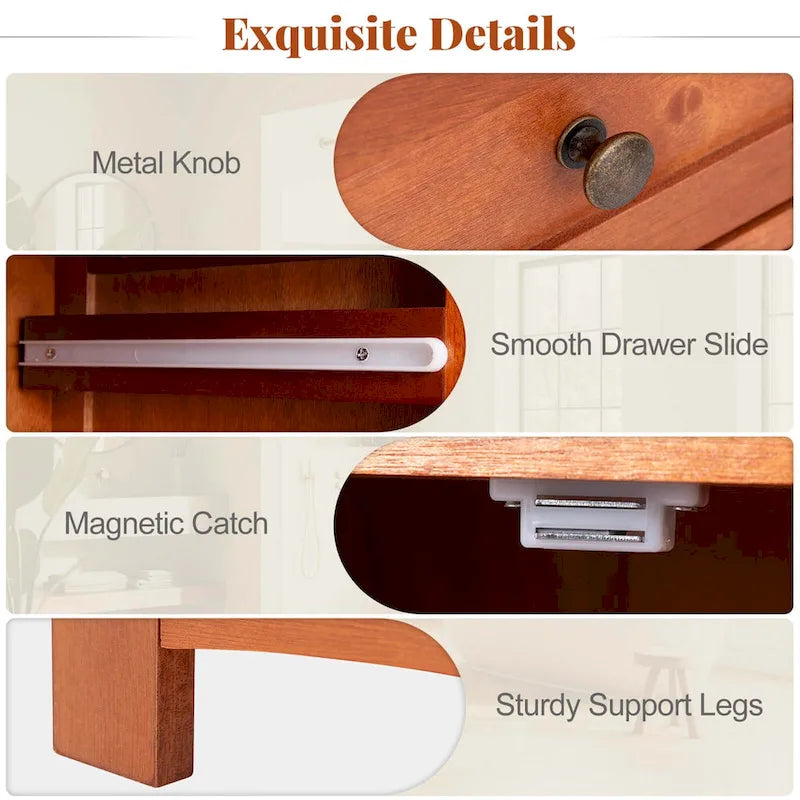 Costway Bathroom Floor Cabinet with Single Glass Door Drawer & - See Details