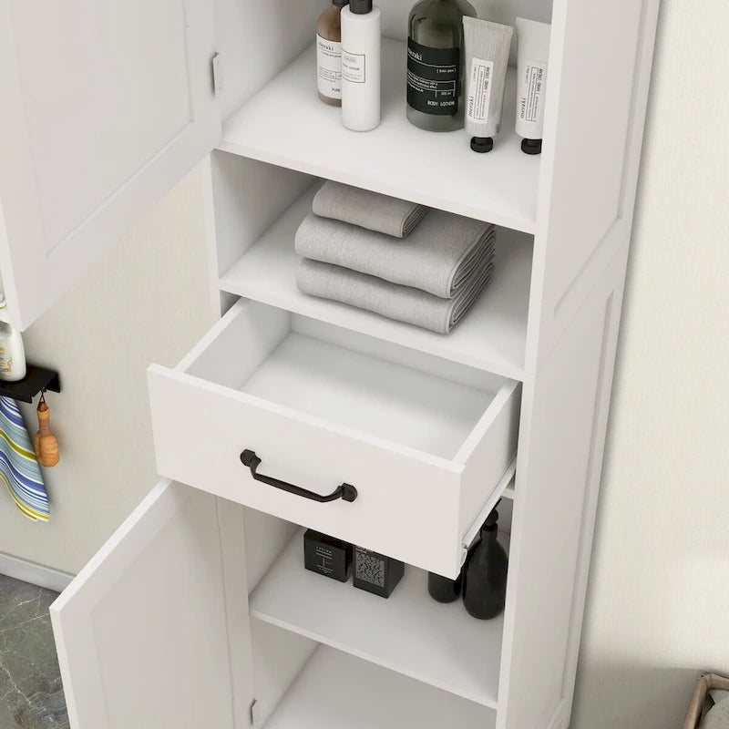 The narrow storage cabinet gets a small footprint due to its slender design that can utilize the spare narrow space in the bathroom, living room, bedroom, entrance, or corridor. What a great storage cabinet for any room in the home!