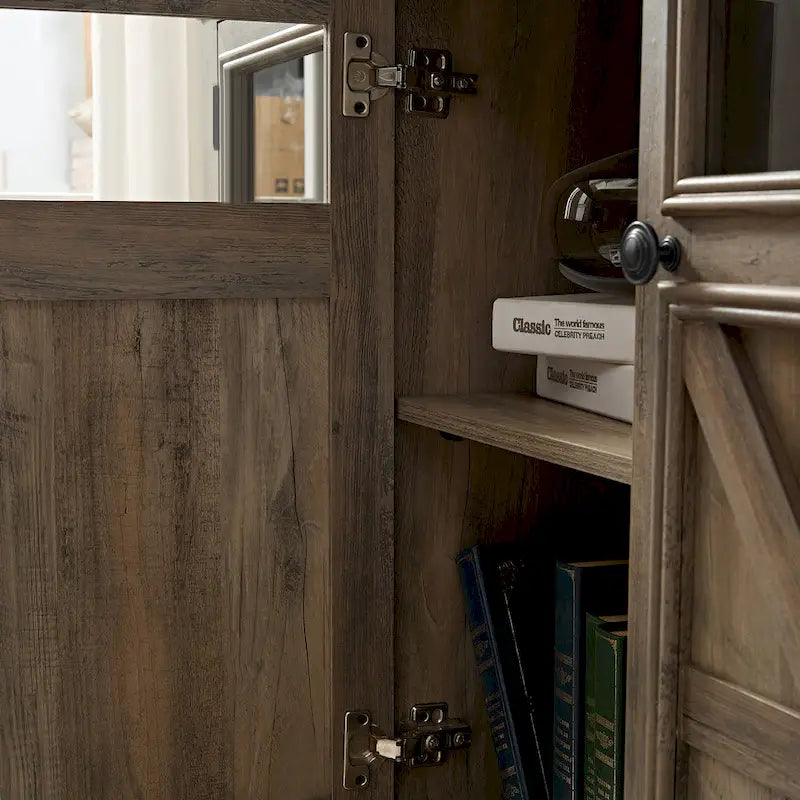 Farmhouse Appeal: The farmhouse coffee bar is completed with classic rustic elements barn doors, black metal handles and finish in two contrast colors, which is steeped in a rich rustic flair and looks right at most country, cottage or coastal abode.