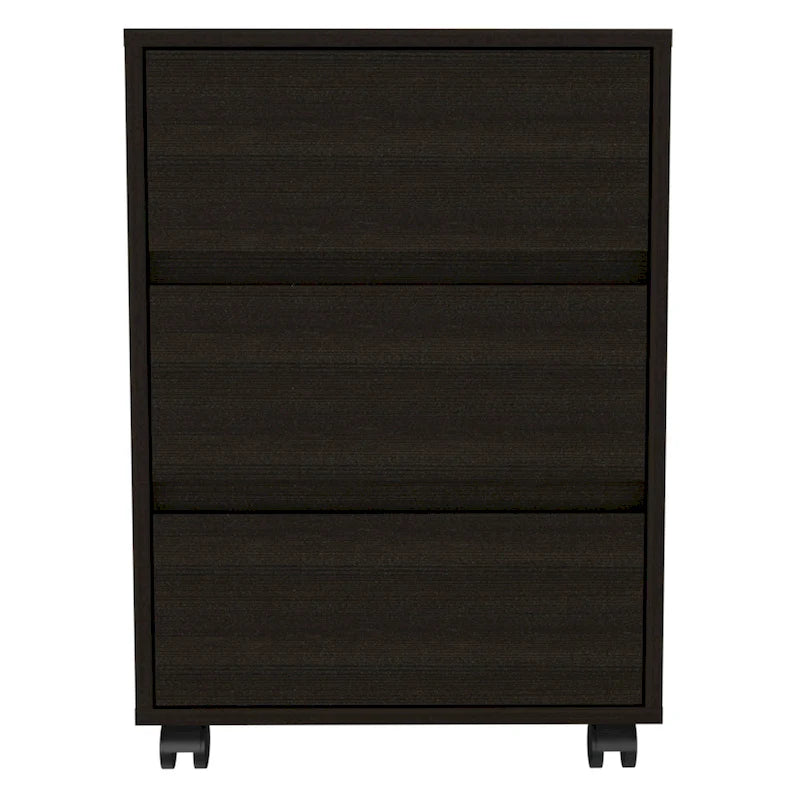 Filing cabinets are an office necessity that isn't always the most attractive, but the Vienna 3 Drawer Filling Cabinet helps you store important papers, books, documents, etc., in three spacious drawers with style. A classic and modern design will match many different style options you may have in your home office. You were featuring all-metal hardware and roller blade glide for smooth use of the drawers, higher quality, and durability. Its spacious three drawers will probe an excellent asset for you, giving you all the storage space you need.This product comes with four wheels that include a locking mechanism as a stationary cabinet or a mobile solution for you.Drawers internal dimensions are 14.8 W x 16.5D x 4.5H. Overall product dimensions are 25.9 H x 18.2 W x 17.8 D Made of particleboard.