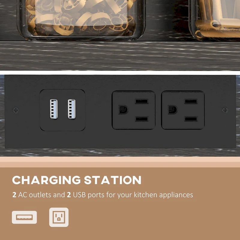 - Charging Station: Our microwave stand with storage features 2 AC outlets and 2 USB ports for your coffee maker, ice maker, and phone. With a 6.6' electrical cord, you can easily access power without being limited to a corner outlet.