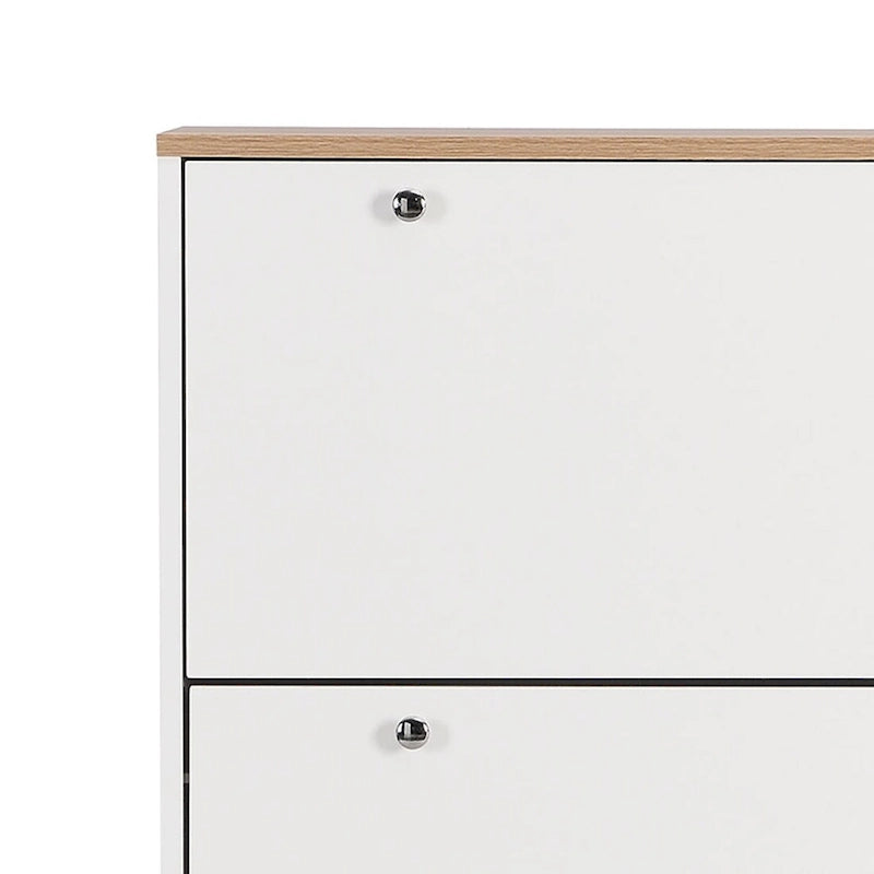 Minimalist Shoe Storage Cabinet with Wood Grain Finished Top Panel
