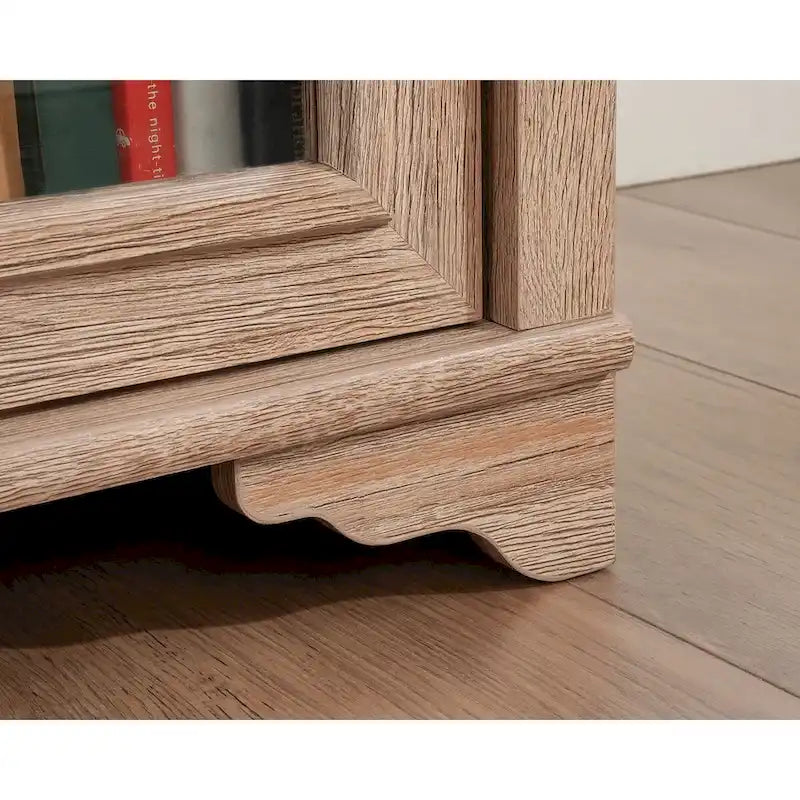 This office credenza from the Rollingwood collection is an essential furniture piece for any modern home office space. This credenza with file drawer features a durable, 1 thick top, making it easy to handle and assemble but sturdy enough to accommodate the heaviest books. This home office credenza features a file drawer with full extension slides that holds letter or legal-size hanging fileskeeping your files organized and easy to find. Storage behind the framed, safety-tempered glass doors features an adjustable shelf for customizable options. Your binders, books, folders, and more can easily be arranged and conveniently stored in this storage credenza. Use the open storage area for an extra place to house or to display your home dcor. A cord management system helps to corral cord clutter and allows for easy charging of your phone or laptop. Finished in Brushed Oak, this credenza cabinet adds timeless flare to your home office.