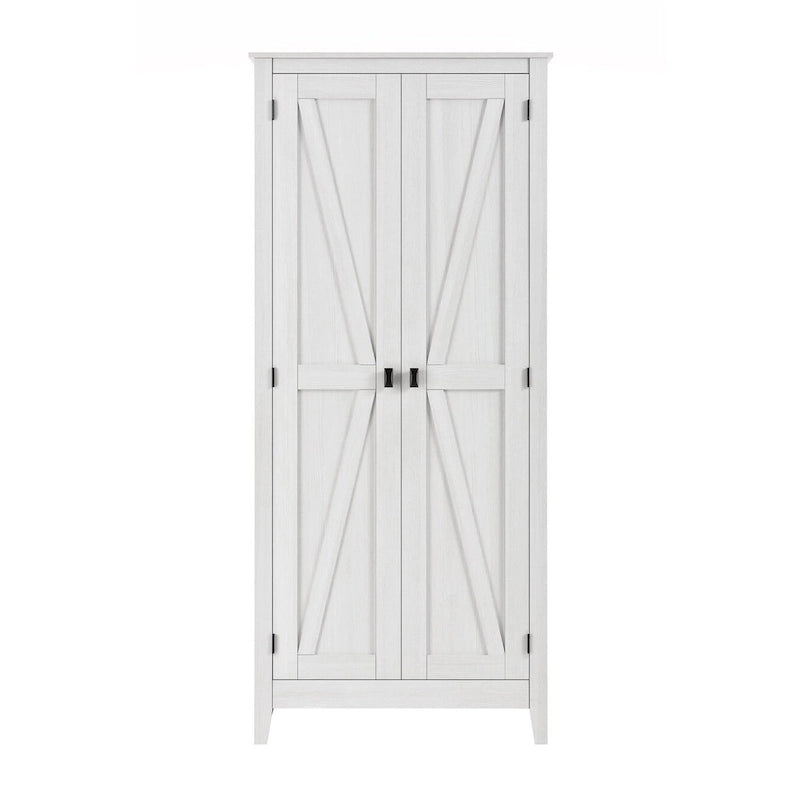 The Systembuild Evolution Becken Ridge 31.5 Wide Storage Cabinet is a stylish way to stay on top of your organization. The rustic barn style design and sleek tapered feet gives the look of an old weathered cabinet but the sturdy laminated particleboard and MDF make this cabinet the perfect piece to house your home office supplies, extra linens, seasonal clothing, nonperishable food and more! Open up the two doors to 4 spacious shelves, 2 adjustable, to fit items of differing sizes. The weathered medium brown finish will bring a nice rustic appeal to your space. The Becken Ridge Cabinet is recommended to be assembled and moved by 2 adults. A wall anchor kit is provided for extra safety and security. After assembled, this cabinet measures to be 71.9H x 31.5W x 15.8D.