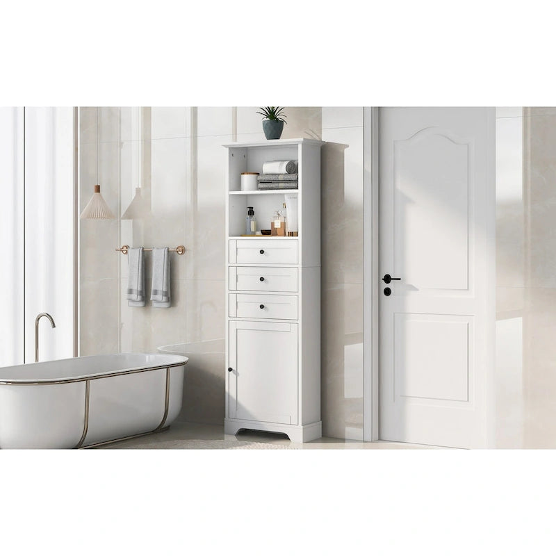 Tall Storage Cabinet with 3 Drawers and Shelves
